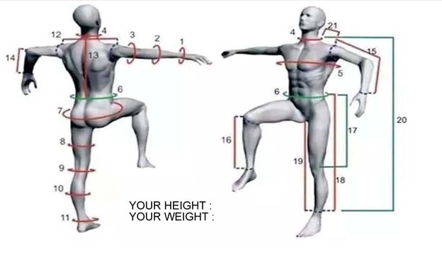 (5): Es ist viel besser, uns Ihre genauen Körpermaße mitzuteilen, damit wir Sie von Experten bezüglich der Größe beraten lassen können.